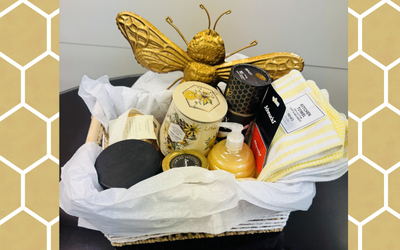 Value $190. Set of 3 Kitchen Towels, Jar of Wildflower Honey, Honey Spoons, Honey Lemon Tea, Honey Body Scrub, Beeswax Candle, Honey Hand Soap, Honey Bee Wall Decor, and $100 Schnucks Gift Card. Donated by the Provost's Office.