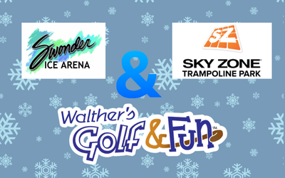 Value $67. Two (2) 60-minute jump passes (no expiration date) for Sky Zone, two (2) rounds of mini golf at Walther's Golf & Fun, and two (2) skate passes + skate rentals at Swonder.