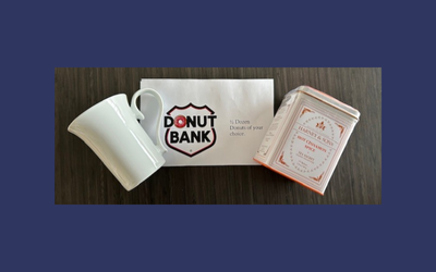 Value $20. Spiced Cinnamon Tea, a mug and a 1/2 dozen donuts from the Donut Bank.