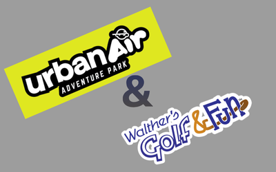 Value $75. Two (2) platinum passes to Urban Air and two (2) rounds of mini golf at Walther's Golf & Fun.
