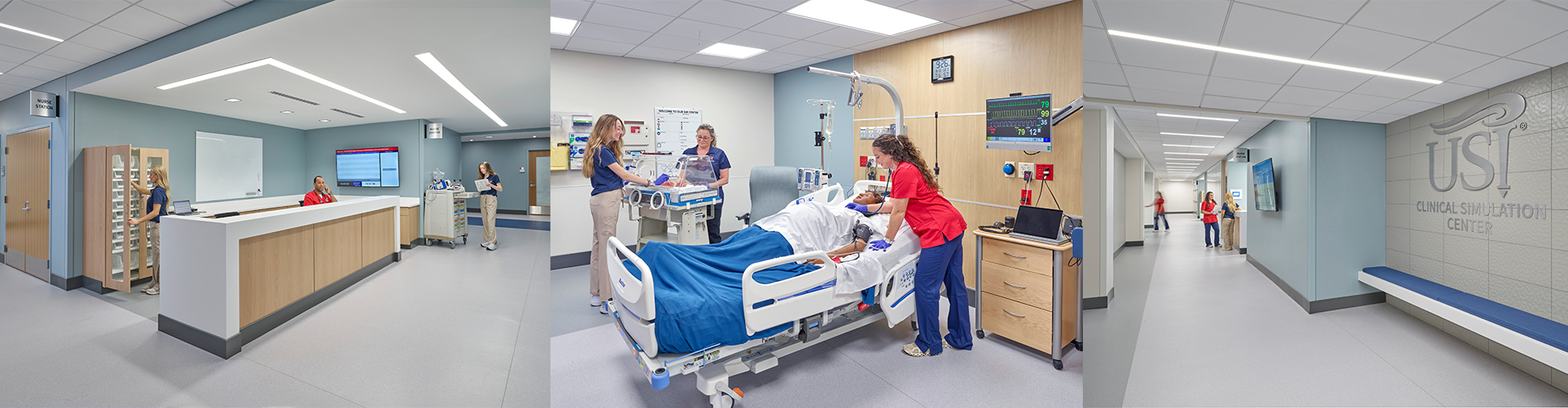 The Kinney College of Nursing and Health Professions at the University of Southern Indiana houses a Clinical Simulation Center for students pursuing careers in health care. The Clinical Simulation Center (CSC), which is designed to have the appearance and feel of a real hospital, is a realistic, safe environment in which students may practice newly-gained skills and knowledge before entering the clinical setting where they will encounter real patients.