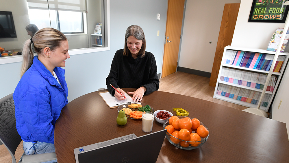 A counseling and education room houses up-to-date nutrition education materials, models, curriculum, journals, and audio visuals. Students also use this space to meet with actual clients, either in-person or through telehealth, to assist with nutrition needs.