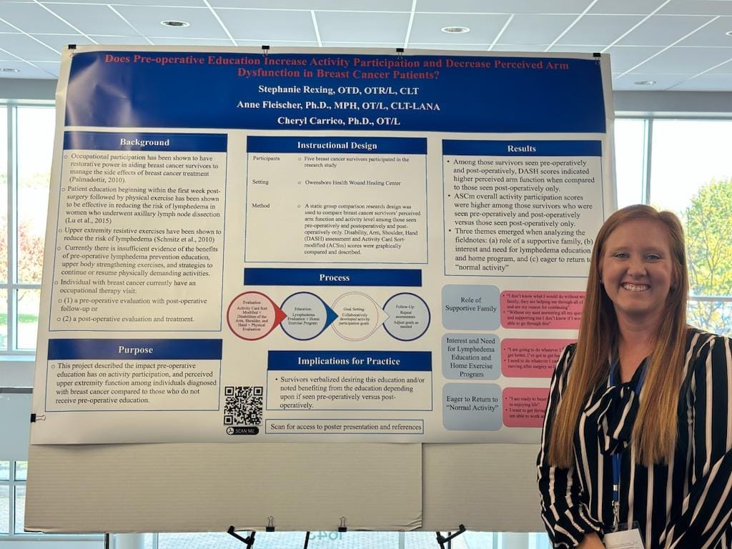 Faculty in the occupational therapy and occupational therapy assistant programs were presenters at the 2023 Indiana Occupational Therapy Association (IOTA) Fall Conference, held on October 21 at the University of Indianapolis Health Pavilion. Dr. Jessica Mason, Assistant Professor and Chair of Occupational Therapy, is Vice President for the Indiana Occupational Therapy Association. In this role, she helped with conference planning, orchestration and many behind-the-scenes logistics.