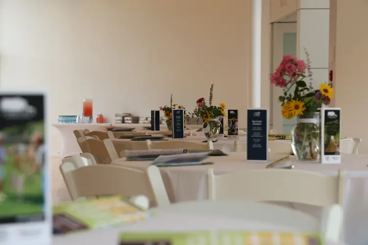 Capacity: the first floor can accommodate 60 people seated at round tables or at adjoining 6’ oblong tables; for a stand-up event with limited seating, the building can accommodate 125 people; Clowes Theatre can seat up to 200 for lecture-style presentations. Suitable for lectures, performances, presentations, receptions.