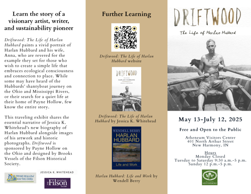 Driftwood: The Life of Harlan Hubbard exhibit brochure designed by Historic New Harmony (PDF)