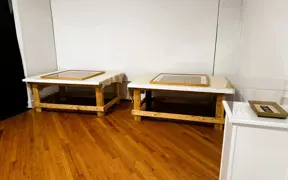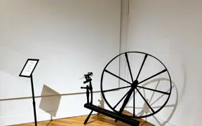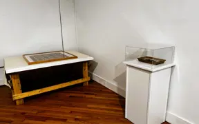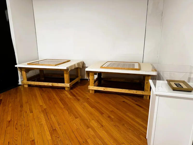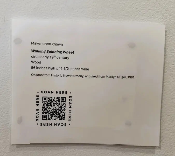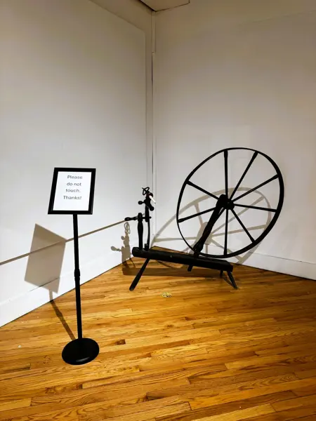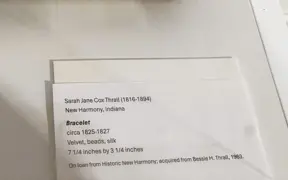 Historic New Harmony loaned four objects to Sarah G. Sharp's solo exhibition, And the thorns were cleared from the path..., on view from Saturday, January 10 to Saturday, February 21, 2026 at the New Harmony Gallery of Contemporary Art. In doing research for the exhibition, Sarah spent time exploring Historic New Harmony's collections with Collections & Community Engagement Manager Heidi Taylor-Caudill in March 2025. These four objects speak to themes in her work and the history of women's lives and labor in New Harmony.