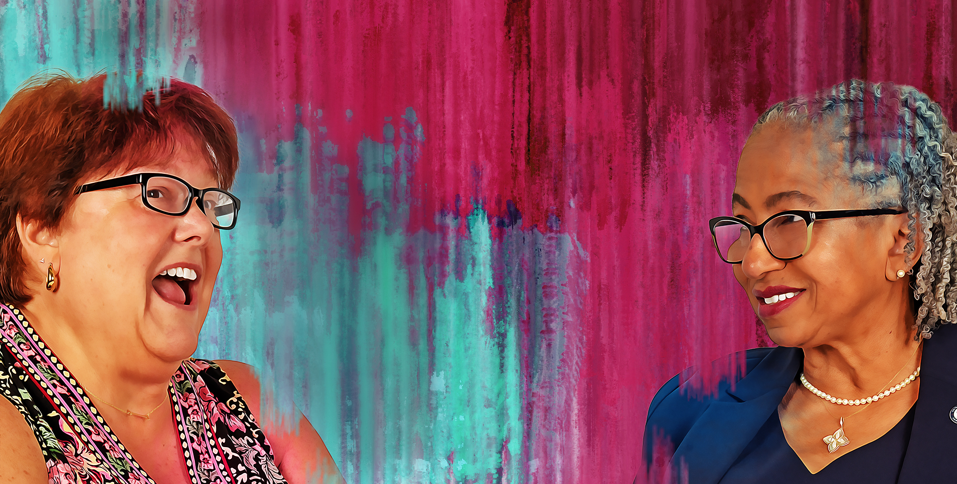 For more than 40 years, DR. PAMELA F. HOPSON D'23 (right), Executive Director of Campus and Community Strategy, and INGRID LINDY '90 (left), Manager of Human Resource Information Systems, have witnessed nearly all of USI's history unfold during their careers. Their journeys began in 1979, a month and 15 days apart. Together, they have worked under all five USI Presidents, watched the campus expand—through construction and student population—and witnessed some of USI's most iconic moments.