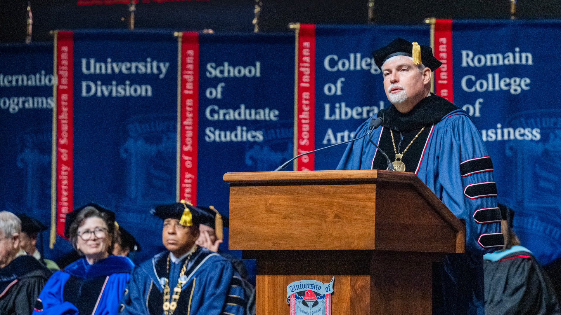 USI celebrated the inauguration of its fifth President, Steven J. Bridges '89 M'95, on October 16 with a ceremony held at Liberty Arena, Home of the Screaming Eagles. This momentous achievement is the culmination of a career both built on purpose and built on numbers.