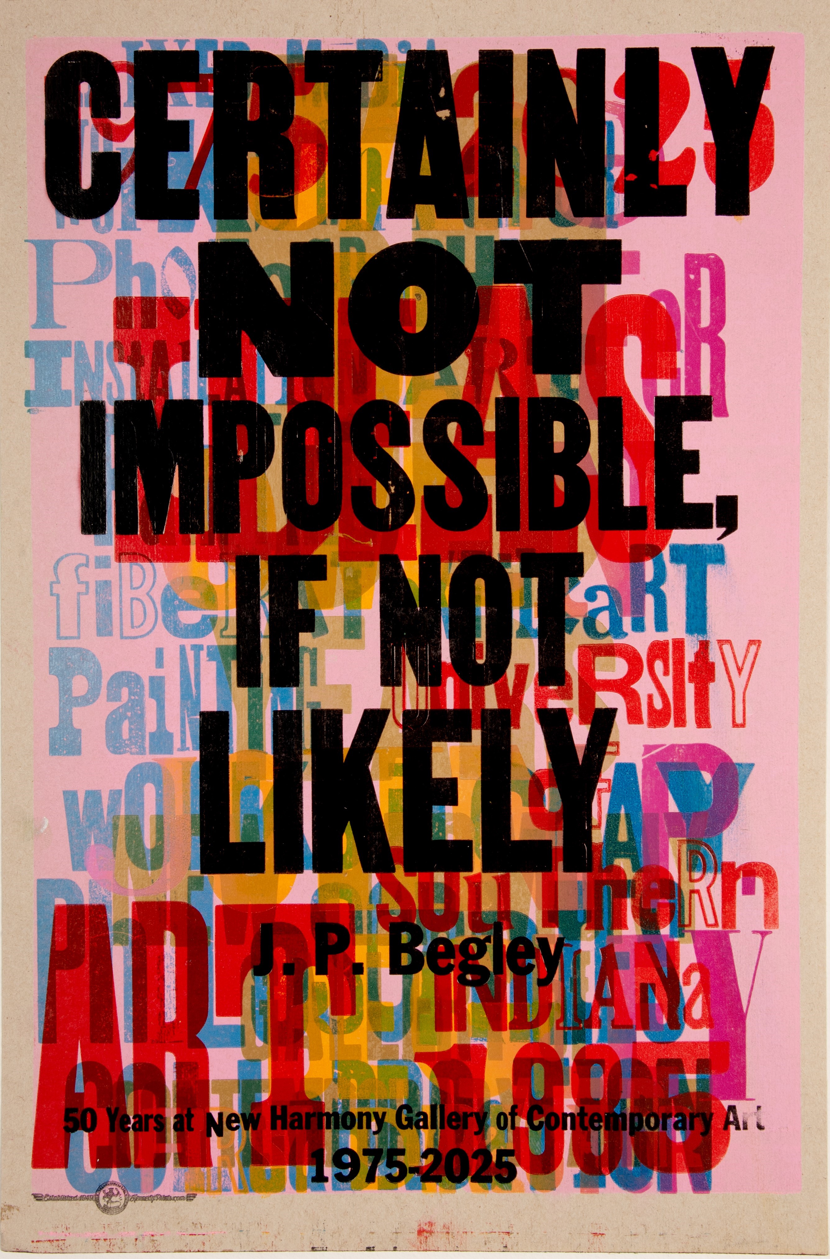This landmark exhibition charts the evolution of the New Harmony Gallery of Contemporary Art while presenting artworks that “look both ways”: speaking to both the impact of the gallery’s exhibition history and celebrating the avant-garde vision integral to the gallery’s identity. With pivotal artworks on view spanning printmaking, clay, painting, mixed media, installation, photography, sculpture and new media, every visitor will find something to ignite their curiosity. “The impact of this gallery over the years is substantial, and this exhibit allows guests to grasp the myriad ways that the New Harmony Gallery of Contemporary Art has featured engaging work by living artists since its very founding,” reflects NHGCA curator Audra Verona Lambert. “From an exhibit timeline tracking key developments to an audio guide that lets visitors hear directly from exhibiting artists, this exhibit makes our cultural impact tangible.”