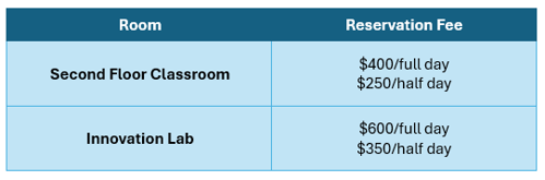 USI @ Innovation Pointe provides classroom, meeting and training facility space available for reservation. Room options and pricing structure are listed below.