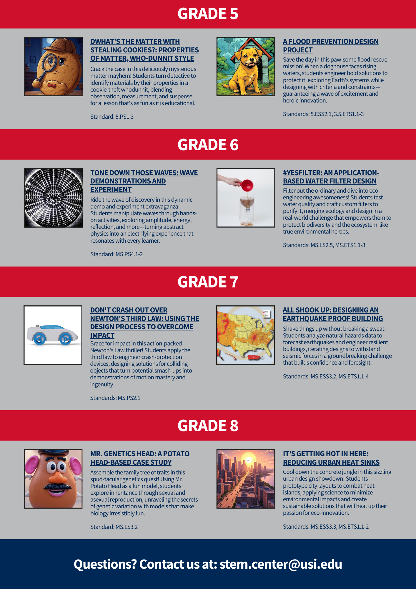 Contact: Evan Rebar Curriculum Development & Outreach Specialist SwISTEM Resource Center Email: stem.center@usi.edu Phone: 812-461-5392