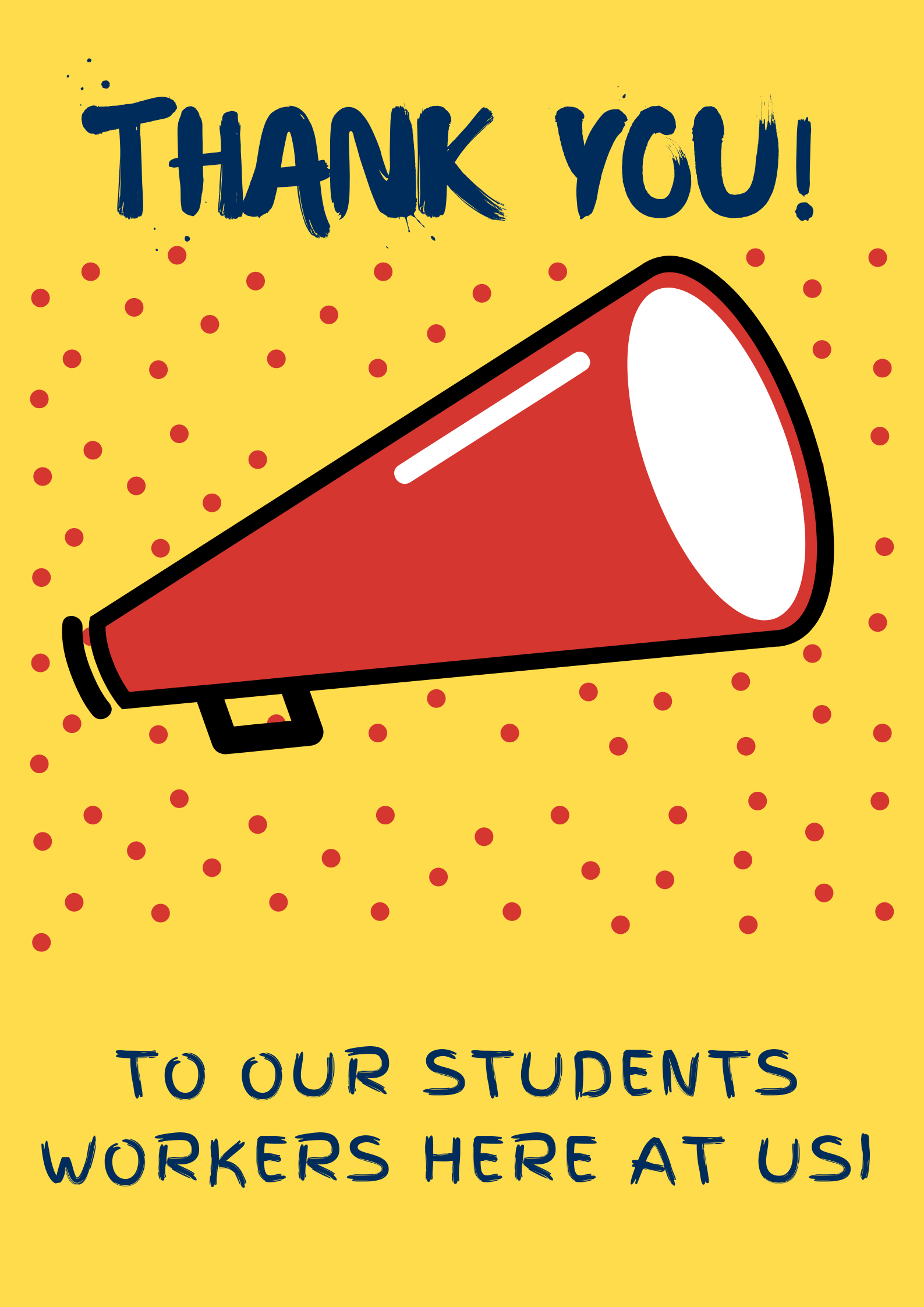 Student Worker Appreciation Week is March 16 - 20 , 2026 and is an opportunity for each department across campus to say "Thank You" to our hard working Student Workers for their efforts and support throughout the school year.