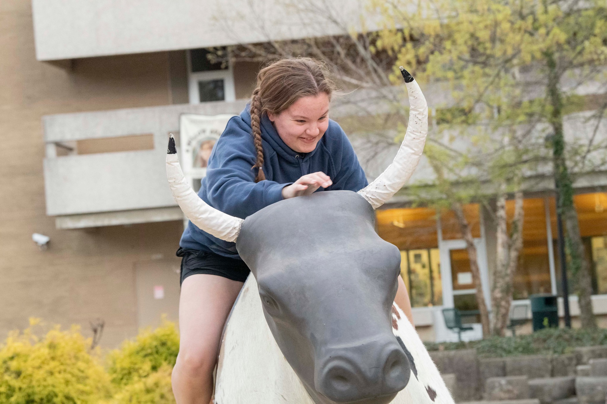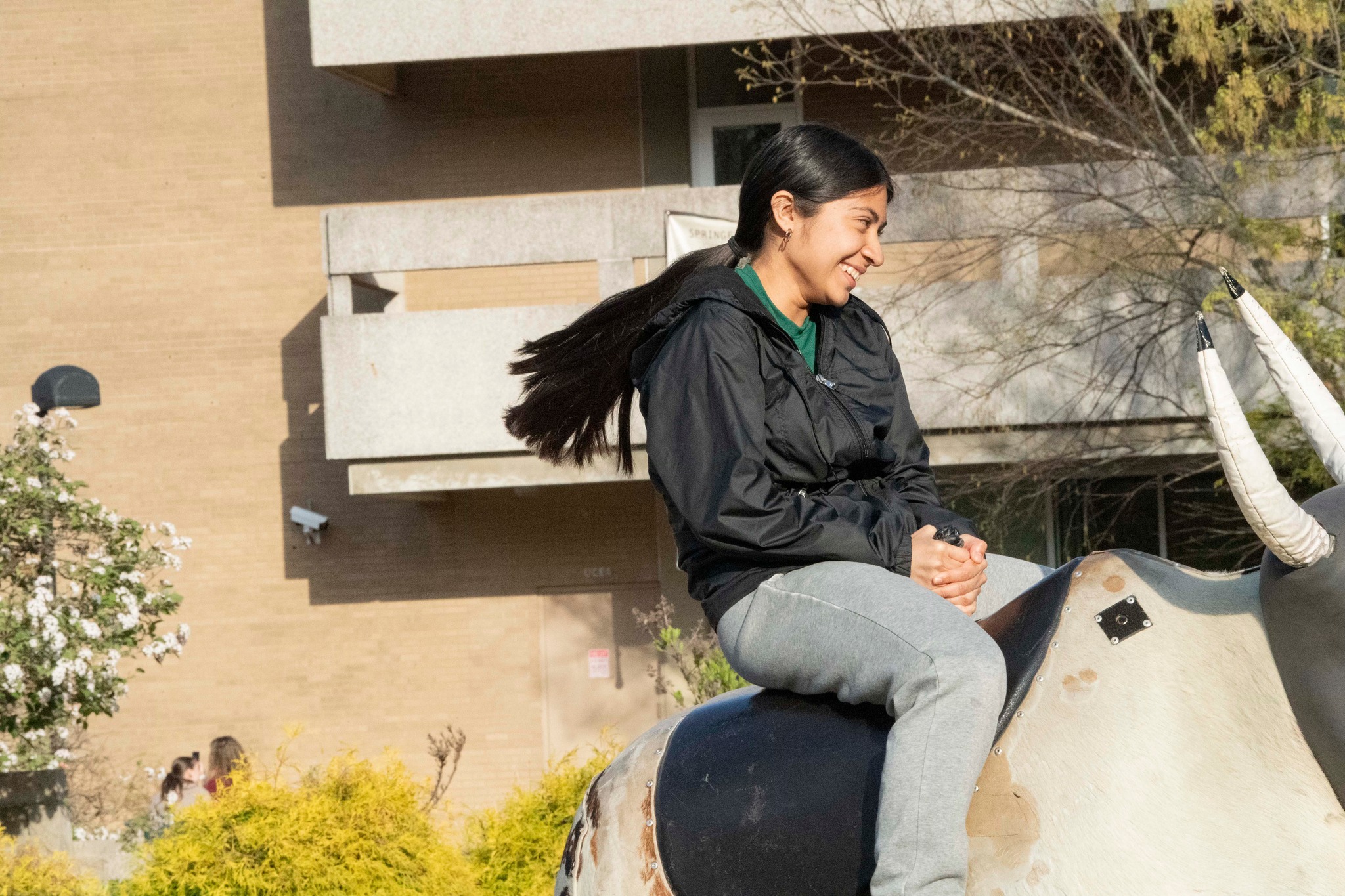 Student rides the mechanical bull at SpringFest Field Day 2024