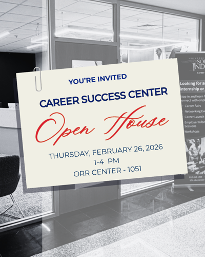 The Career Success Center invites students, faculty, staff and community members to stop by and open house showcasing the department's new space from 1 to 4 p.m. on Thursday, February 26 in Orr Center 1051. This celebration marks the unveiling of the newly redesigned, modern facility created to ensure students have direct access to professional, high-impact career development resources from the moment their journey begins at USI.