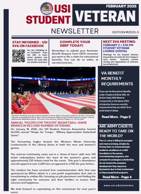 The monthly newsletter is a great communication tool for the veteran community, both off campus and on. The publication allows students to learn important information about changes in benefit programs, procedures, on-campus events and community veteran events