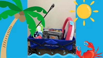 Value $250. Beach wagon donated by Working Distributors filled with beach fun: cooler, pool noodles, and a to-go beverage holder.