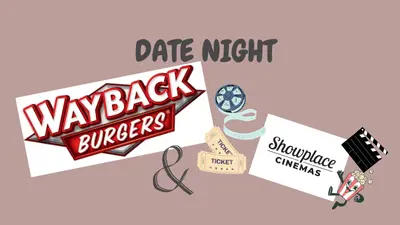 Value: $54. $30 gift card to WayBack Burgers & two (2) tickets to a movie of your choice at Showplace Cinemas.