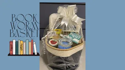 Value $263 - $50 gift card to Barnes and Noble, full/queen plush white blanket, 8x10 journal, two (2) books, cross stitched butterfly bookmark, a stained glass flower hanger, coasters, spiced tea, candy jar, page magnifiers and candy bars. Donated by the USI Rice Library