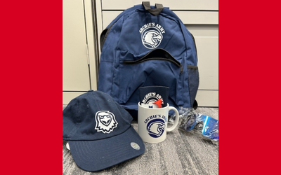 Value $55. Archie's Army swag: Backpack, Ball cap, mug, sunglasses, magnet, and key chain.