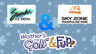 Value $67. Two (2) 60-minute jump passes (no expiration date) for Sky Zone, two (2) rounds of mini golf at Walther's Golf & Fun, and two (2) skate passes + skate rentals at Swonder.