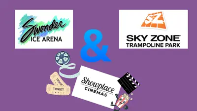 Value $106 - Three (3) admission passes + skate rentals at Swonder, three (3) movie tickets to Showplace Cinemas, and three (3) 60-minute jump passes at Sky Zone.