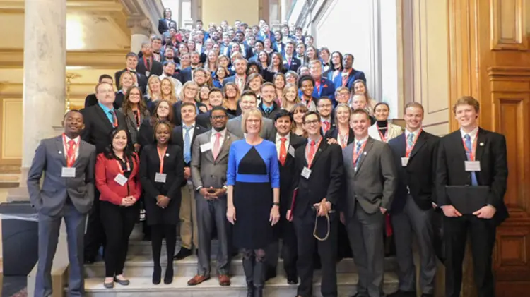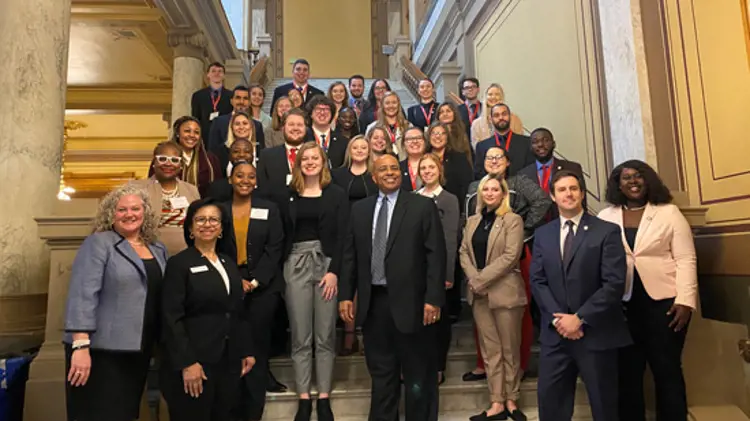 USI President Ronald Rochon, several key members of the staff and thirty-four students representing all four colleges, International Programs, SGA, Veterans Affairs, Graduate Studies, the Multicultural Center, and Honors Program participated in the 2020 Day at the State House. The daylong event included a tour and observation of the House and Senate Legislative Sessions in action. Several legislators and Lt. Governor Suzanne Crouch joined and spoke with the students over lunch. | February 24, 2020