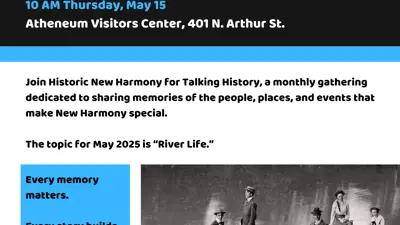 The traveling exhibit coming to New Harmony shares the essential narrative of Jessica K. Whitehead’s biography alongside images of Harlan Hubbard’s artwork and historic photographs. The Atheneum is the latest stop on its tour, which is booked through 2026. The exhibit will next travel to the Lucille Caudill Fine Arts & Design Library at the University of Kentucky in Lexington, Kentucky, in late July. It will also be displayed in 2025 at the Janice Mason Art Museum in Cadiz, Kentucky.