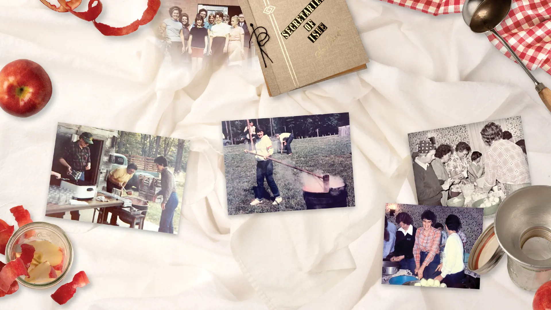 The Club doubled its fundraising over the next two decades, gaining serious entrepreneurial skills, most notably with their iconic annual apple butter sales. This three-day, all-hands-on-deck event was held at the Outdoor Education Center. Volunteers cored, peeled and cut up 30 bushels of apples. Taking shifts at copper pots over bonfires, they stirred the apples and spices with long wooden paddles. The jars of freshly made apple butter were sealed and sold to waiting customers at the University's Fall Open Houses.