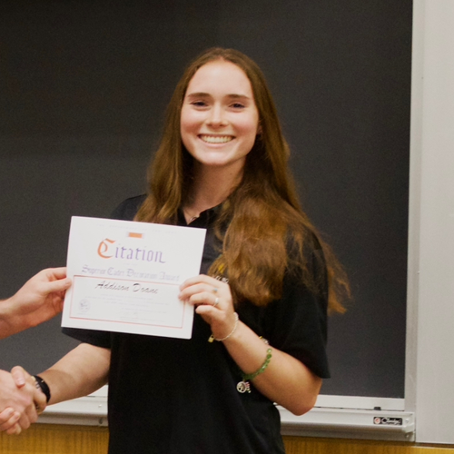 I am a member of the honors program, the True Crime Book Club, the President of the Criminal Justice Student Association, the Spanish Club and the ROTC program. I am also an intern for the Evansville Police Department. I am also in the Army National Guard, specifically working with Military Police.