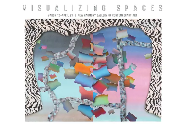 New Harmony Gallery of Contemporary Art, University of Southern Indiana is proud to present Visualizing Spaces, a group exhibition featuring works by Robert Burnier, Su A Chae, Nasreen Khan, Diego Morales-Portillo, Brenda Mallory, Deb Sokolow, and Janie Stamm. The exhibition runs from March 12 – April 23, 2022, with gallery hours from 10:00 AM – 5:00 PM Central, Tuesday – Saturday.