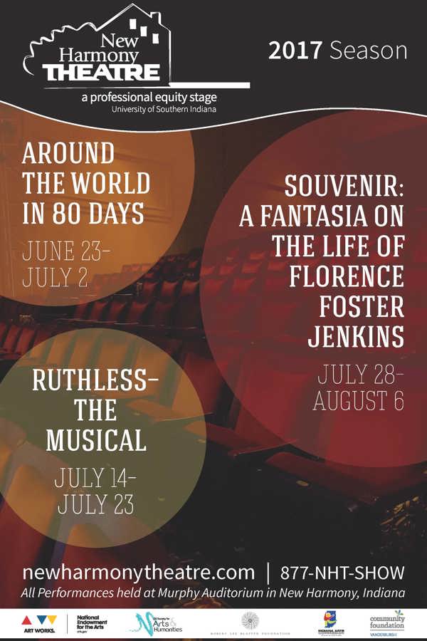 The New Harmony Theatre is a professional Equity theatre produced by the University of Southern Indiana and is the Tri-State's only professional Equity theatre. For more information or to purchase tickets, go to NewHarmonyTheatre.com or call the box office at 812-682-3115 or 877-NHT-SHOW. For updates, visit the New Harmony Theatre Facebook page.