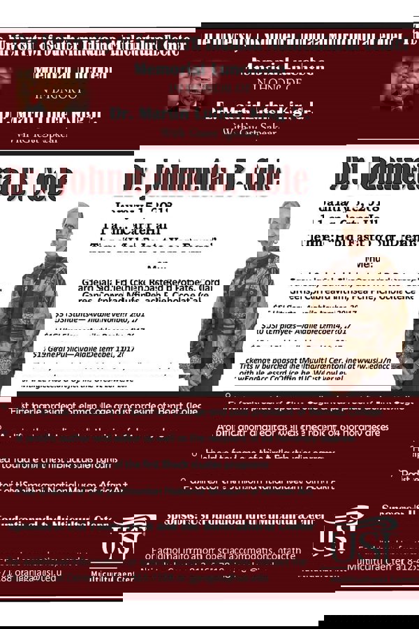 The annual Dr. Martin Luther King, Jr. Memorial Luncheon features a prominent, successful African American keynote speaker and attracts a large crowd from throughout the community. The luncheon encourages and inspires attendees to continue working for the cause of racial equality, for which King gave his life. The event is sponsored by the USI Foundation and the USI Multicultural Center and will include entertainment by student and community groups.