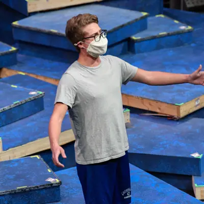 As they figuratively unite, actors are literally keeping their distance. For weeks, typical four-hour, full-cast rehearsals morphed into 45-minute individual or smaller group sessions with 15- to 20-minute breaks so everyone could clear the room. Students wear special "singing masks" and limit instances in which they cross each other on and off stage. "I don't want this to be the process for the rest of our lives, but it hasn't been as limiting and odd as I would have assumed that it would be," said Altheide.