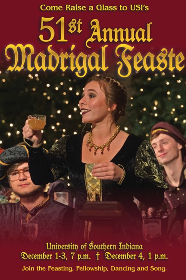 The University of Southern Indiana Chamber Choir will host the annual Madrigal Feaste December 1-4 in Carter Hall, located in University Center West on the USI campus. December 1-3 performances will begin at 6 p.m. with doors opening at 6:30 p.m., and the December 4 matinee performance will begin at 1 p.m. with doors opening at 12:30 p.m.