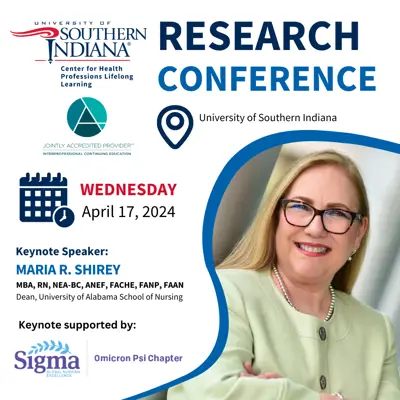A former member of the University of Southern Indiana Nursing faculty will be the keynote speaker at the 28th annual University of Southern Indiana Research, Evidence-Based Practice and Performance Improvement in Healthcare Conference, slated for Wednesday, April 17 in Carter Hall, located in University Center West. Dr. Maria R. Shirey is the Dean and Fay B. Ireland Endowed Chair in Nursing at The University of Alabama at Birmingham (UAB) School of Nursing and serves as Director of the UAB’s Pan American Health Organization/World Health Organization (PAHO/WHO) Collaborating Centre for International Nursing.