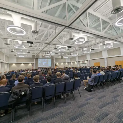 Students also listened to and talked with current USI business students Madison Heil, Emma Jacob, Alex Perry, Rosa Pund and Michael Solliday, who discussed their experiences on a student panel. Additionally, they were invited to listen to local professionals, USI alums Andrea Metcalf '17, Ryan Clark '18 and Michael Carroll '88, discuss their professional careers.