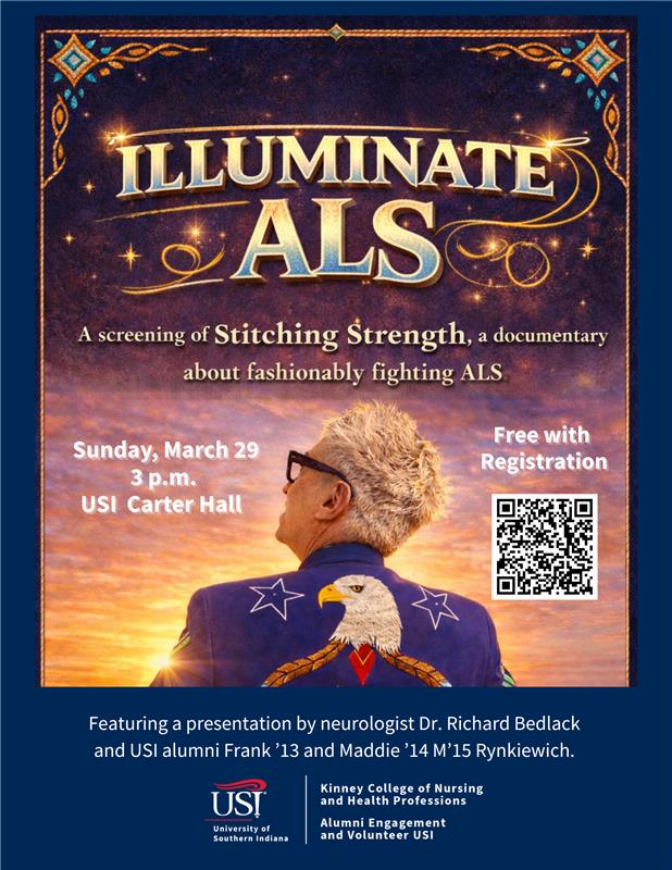 Illuminate ALS is presented in collaboration with the USI Occupational Therapy Assistant (OTA) Program; USI Student Occupational Therapy Association (SOTA); Alumni Engagement and Volunteer USI; USI Center for Health Professions Lifelong Learning; Indiana Occupational Therapy Association (IOTA); Friends and family of Frank Rynkiewich; ALS United; and ALS Family of Faith.