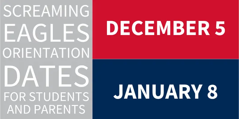 Students will be advised and registered for courses prior to their Screaming Eagles Orientation. You will schedule your advising appointment after you make your reservation for orientation. These advising appointments can be in person or by Zoom. There will be time in the afternoon of your orientation to meet with your advisor if no times available works.