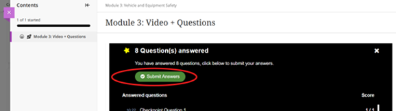 - At the end of each Module is a short quiz consisting of 4 to 6 questions. You must click “Submit Answers” to continue.