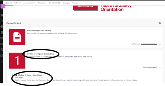 - Click “Module 1” to start course. NOTE: You cannot take the final without completing each Module.