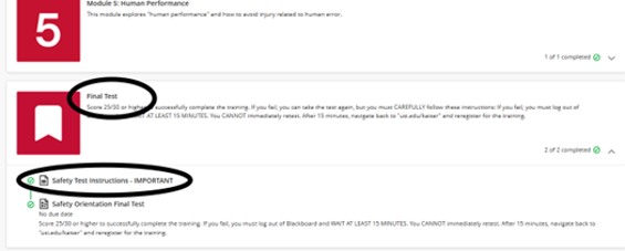 - When you have finished all 5 modules and quizzes, click “Final Test”