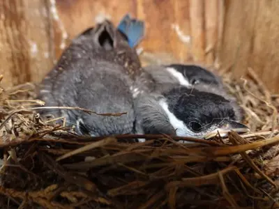 Our students made an interesting discovery in one of our bird boxes. Carolina Chickadees and Eastern Bluebirds don't usually share nests. However, a pair of chickadees kicked bluebird parents out of their nest and proceeded to lay their own eggs and raise both the chickadee and bluebird chicks! You can read more about this story in the Evansville Courier & Press.