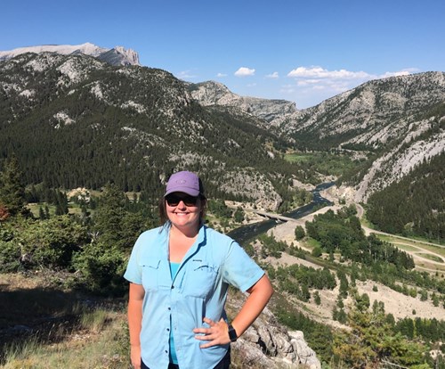 Grace Stone graduated with a B.S. degree in Geology from USI in Spring 2017. Photograph of Grace Stone in Sun River Canyon, Montana.