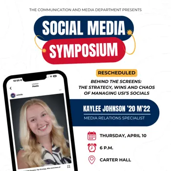 The University of Southern Indiana College of Liberal Arts and the Communication and Media Department is excited to announce the annual Social Media Symposium at 6 p.m. Wednesday, March 20 in Carter Hall, located in University Center West. The event is open to the public at no charge and will be available virtually through Zoom, as well as in-person.