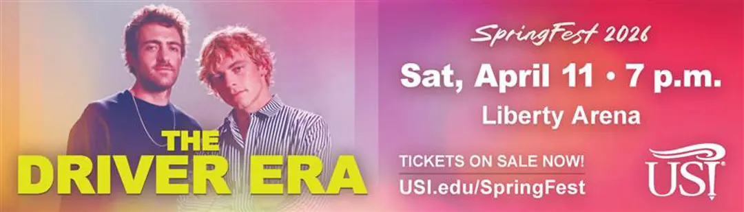 Doors will open at 6 P.M., with our opening act Lucas Washington, a USI student going on at 7 P.M., followed by our headlining act The Driver Era at approximately 8 p.m.!