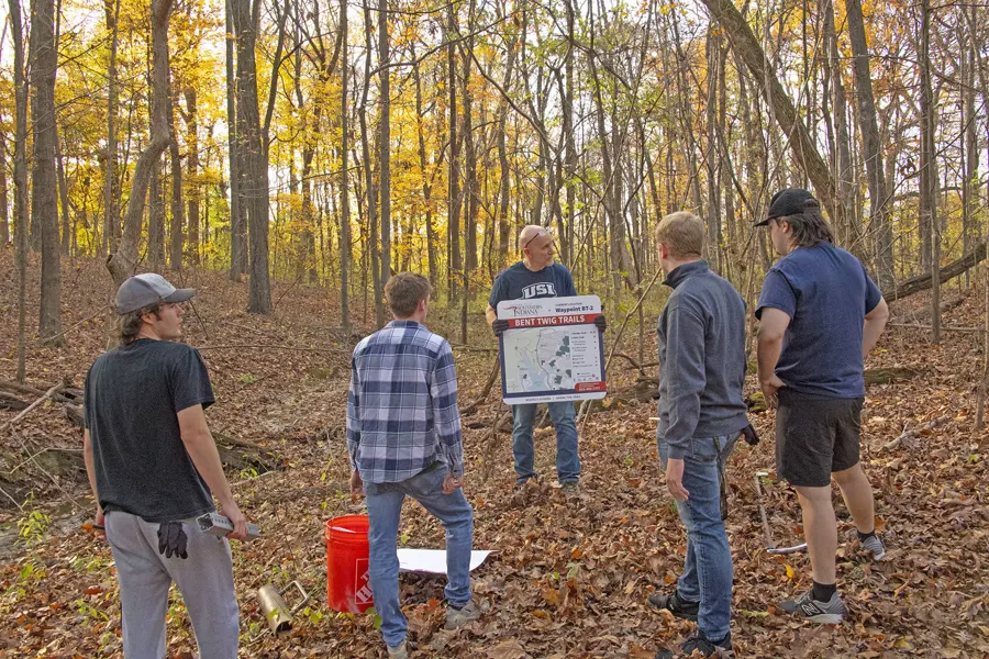 In fall, 2023, a group of USI trail enthusiasts met and formed a USI Trails Committee with a goal of preserving and maintaining the miles of multiuse trails on the University campus, as well as adding signage.