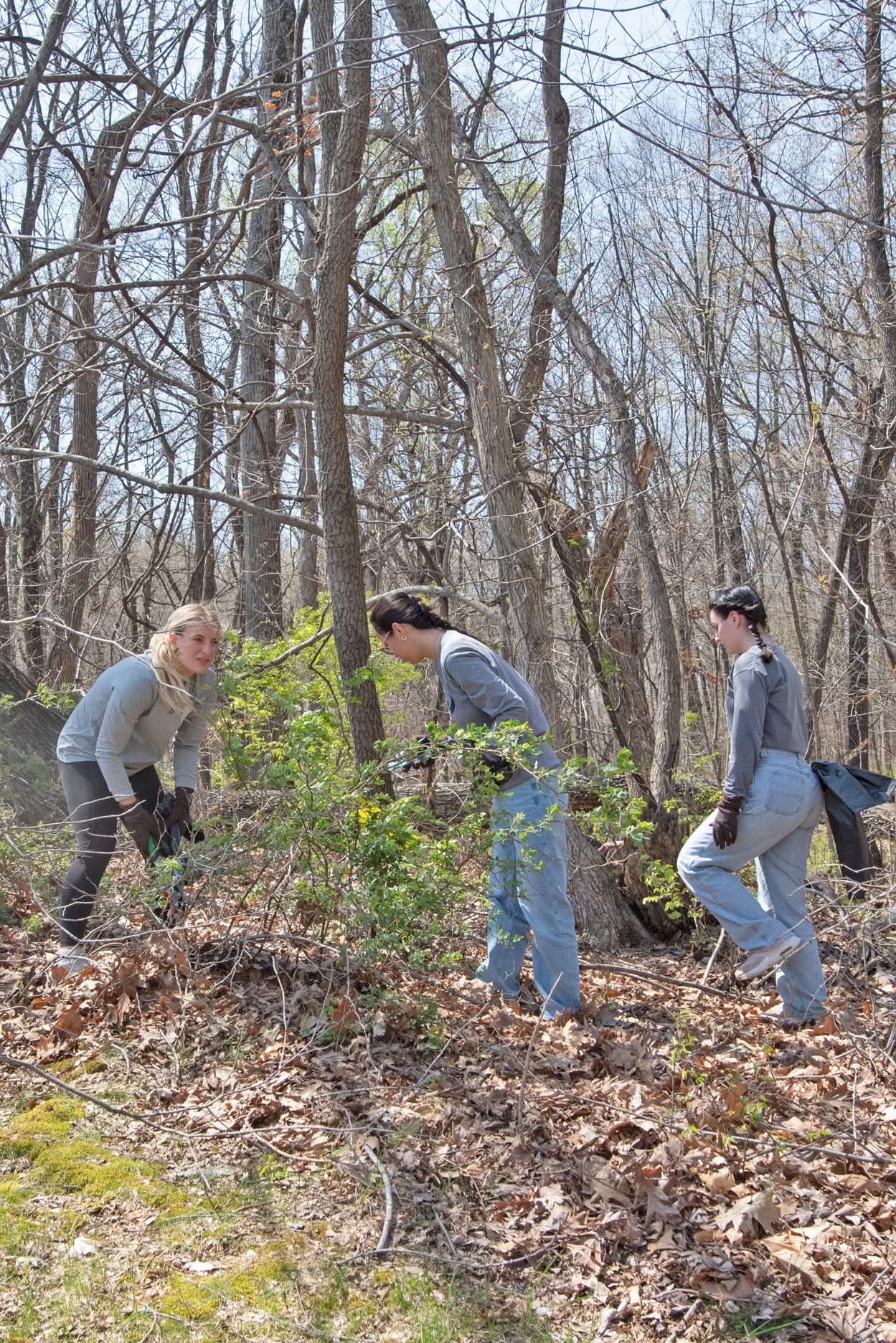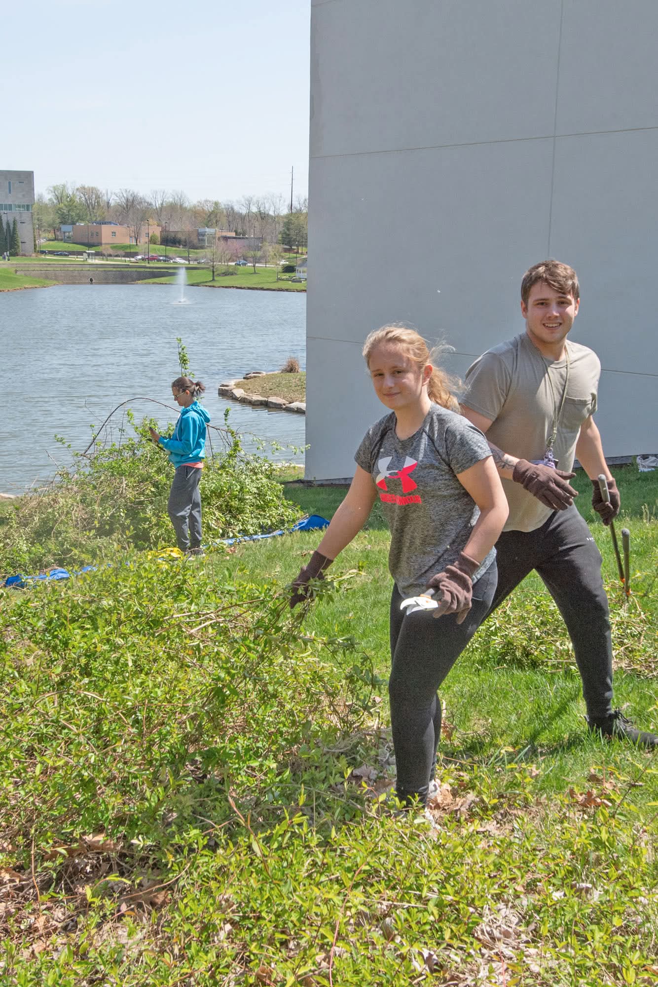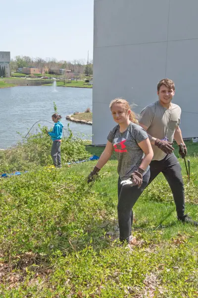In the Fall of 2009, the Director of USI's Service-Learning Program, Dr. Anne Statham, Professor of Sociology, led several students through a refresh of the Bent Twig Trails at the northwest corner of campus. Students participating in the project laid gravel and mulch along the trails, cut back the natural growth encroaching on the walking paths and researched what native species could be planted along the paths. Azaleas were planted along the trails leading to Reflection Lake. Working with Dr. Charles Price, professor of science education and Don Fleming, USI's property supervisor, they planted many ferns along the main trail.
