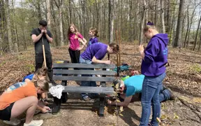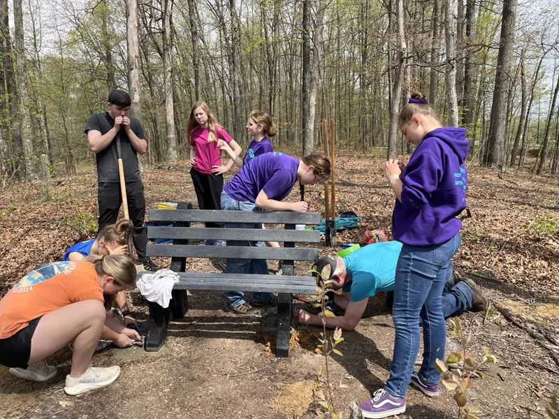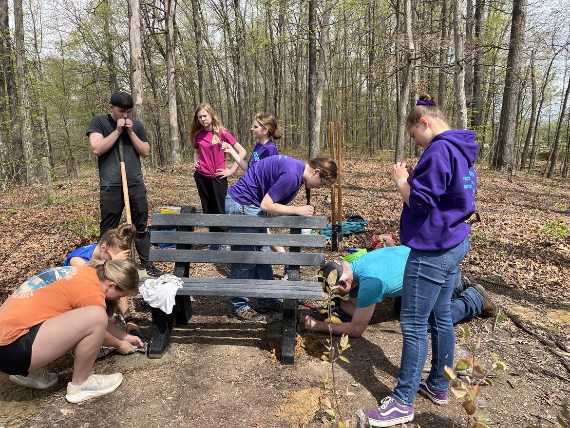 Westwood Garden Club spent nearly 15 years making improvements in conservation and preservation at USI that can be seen on the trails and in the Outdoor Education Center. Today, the trail system includes a stone lodge that was original to the property, a restored 1800s log house and Appalachian barn, a turn of the century brick schoolhouse and a natural amphitheater.