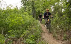 The Campus Flow Trails include three downhill runs complete with dirt jumps and bermed corners. The trails are rated for beginner, intermediate and expert level riders. The trails were funded through a grant from the CenterPoint Energy Foundation.