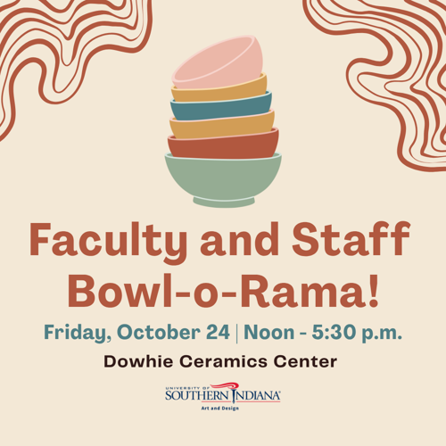 Faculty and staff are invited to stop by the Ceramics Center from noon to 5:30 p.m. Friday, October 24 to learn how to throw bowls on a potter’s wheel to help the Empty Bowls Event.